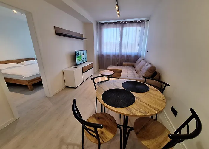 Los huéspedes pueden hacer uso de una cocina completa con tostadora y también horno para preparar sus propias comidas. El restaurante Sedliacky Dvor Aupark sirve platos de cocina checa y se encuentra a muy poca distancia de este apartamento. La parada de autobús Palackeho está a 200 metros del apartamento de 36 m^2.